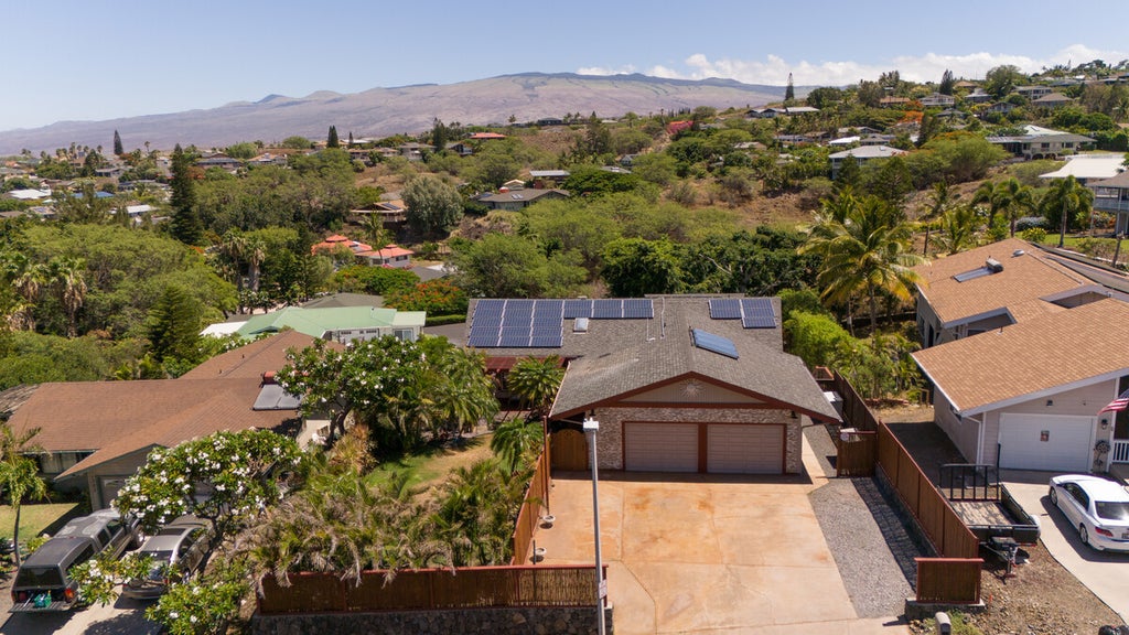 The property is sold fully furnished and features recent upgrades such as a solar water heating system, refreshed ceiling fans, and automated door locks. Set on a terraced lot, the home enjoys Kohala Mountain views, an optional garden space, and a peaceful neighborhood setting while remaining close to shops, dining, schools, and community amenities.
