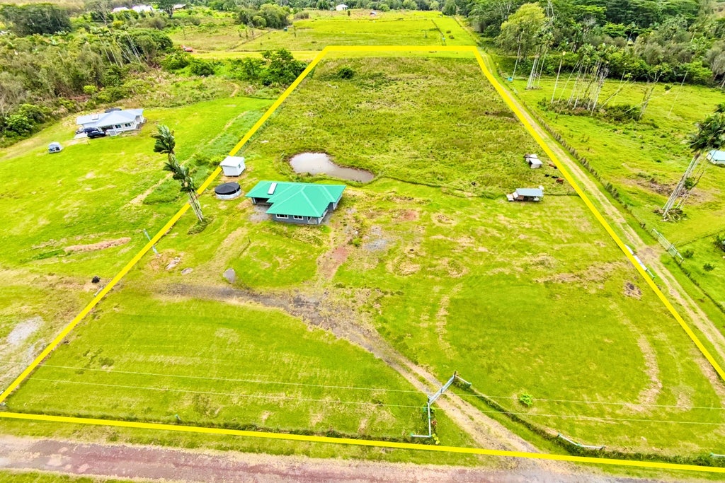 Discover your slice of paradise on this 5-acre estate in the lush community of Kurtistown. Built in 2021, this single-level 3 bed, 2 bath home offers 1,216 sqft of thoughtfully designed living space with vaulted ceilings and a 2-car garage. The property features a tranquil pond and flourishing banana, lemon, orange, and lychee trees. At the top of the hill, a fire pit creates the perfect spot to relax and stargaze under Hawaii’s clear night skies. Wake up to sweeping horizon views of the Pacific Ocean, Mauna Kea, and Mauna Loa—a daily reminder of the beauty that surrounds you. With ample room to expand, garden, or simply enjoy the privacy, this property offers the perfect balance of modern comfort and natural island charm.