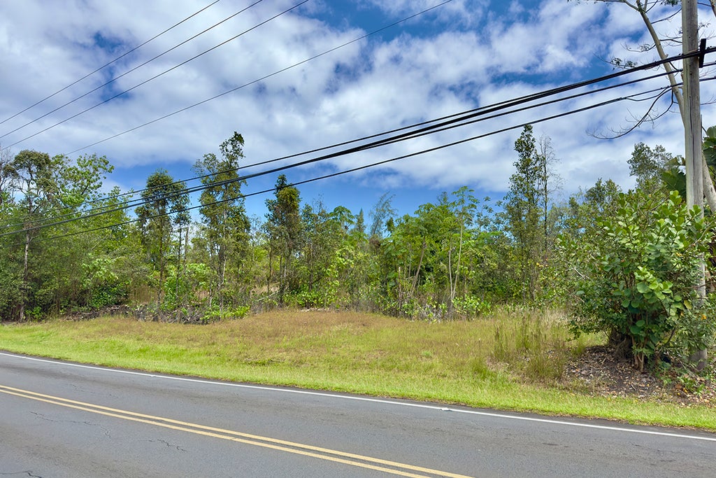 Previously partially ripped and leveled, this vacant corner lot in the center of Hawaiian Paradise Park is ready for your vision. Since being bulldozed, the property has been naturally re-landscaped with native 'ohi'a trees, while the area designated for a house pad remains grassy. The eastern portion of the lot remains forested and untouched, leaving a natural buffer for privacy from neighbors. Per Hawaiian Electric, power is available; no SSPP fees. A great location on one of the main roads in and out of Hawaiian Paradise Park.
