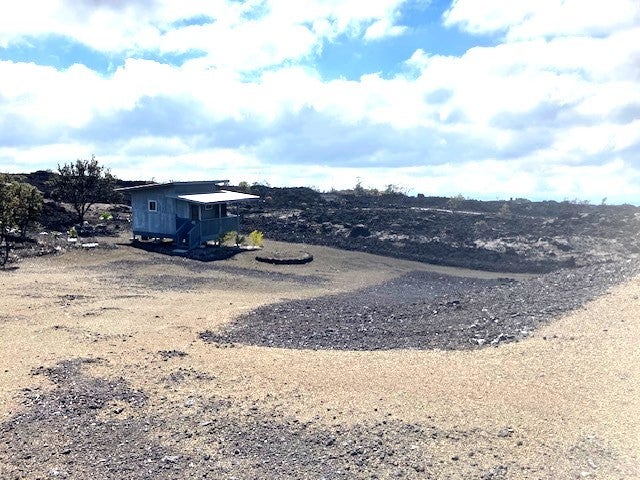 Beautifully dozed and terraced wide acre in upper Hawaiian Ocean View Estates. A rock wall fronts the property and a well built cabin is placed on the back of parcel next to a grove of Ohia trees. Cabin is well built and secure, ready for further amenities to be added. Two building pads, one high and one low, are prepared for additional structures. Ocean views to the west are visible from all parts of the lot, but high building pad has big views...and sunset and sunrise views will be happening daily. Ocean View Town Center has necessary day to day needs available; groceries, gas, hardware and restaurants. A great rural community with big, affordable lots and a ideal climate. Comfortable living on the Big Island.
